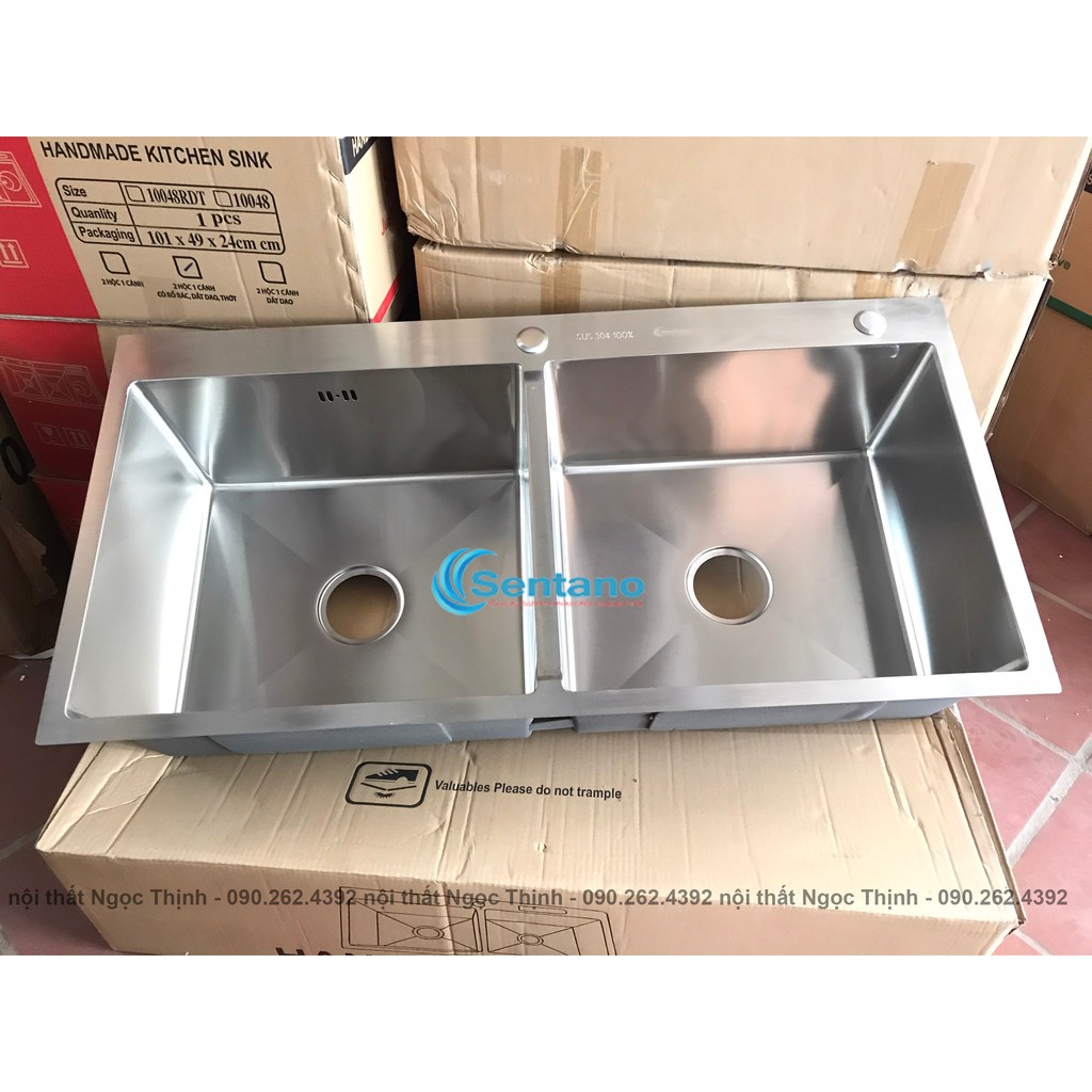[SIZE LỚN] Bồn chậu rửa chén đúc SENTANO PLUS 100x50 cm 100% inox 304 hàng loại 1 có 2 ngăn lớn đều nhau