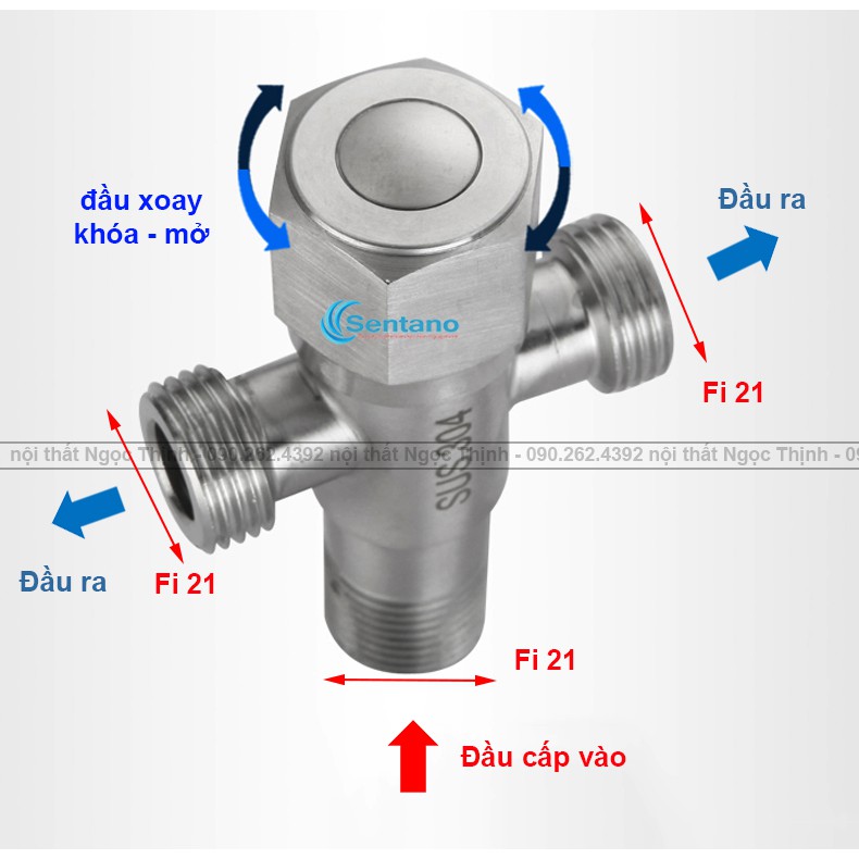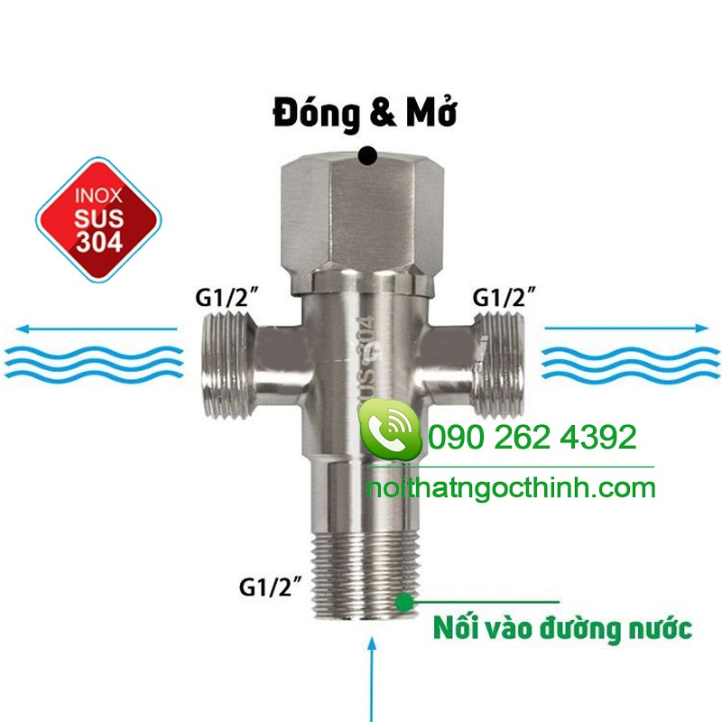 - Van có 1 đầu cấp vào và 2 nhánh cấp ra để chia dòng nước, thường chia dòng nước cho bồn cầu và vòi xịt vệ sinh