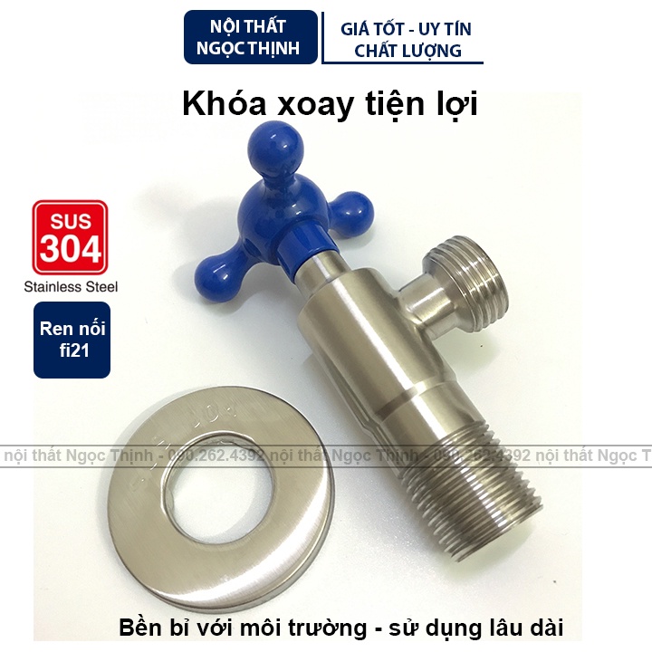 * Van khóa thiết kế các đầu ren nối là fi 21mm, phù hợp với tiêu chuẩn thiết kế Việt Nam dùng chung cho đầu nối van khóa và dây cấp trong gia đình
