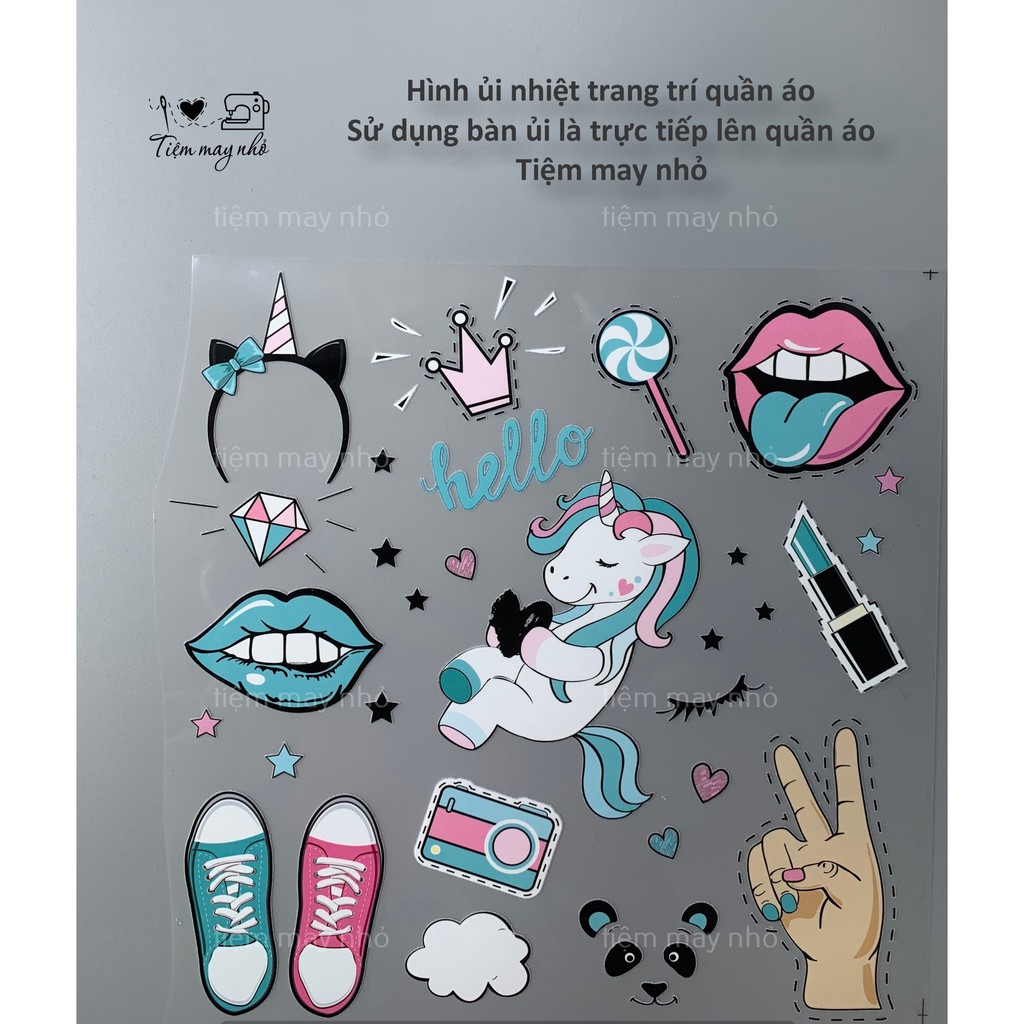 Tấm hình dán/ ủi nhiệt trang trí quần áoDùng bàn ủi/ là trực tiếp lên trang phục. 1 tấm bao gồm nhiều hình nhỏ như ảnh mẫu