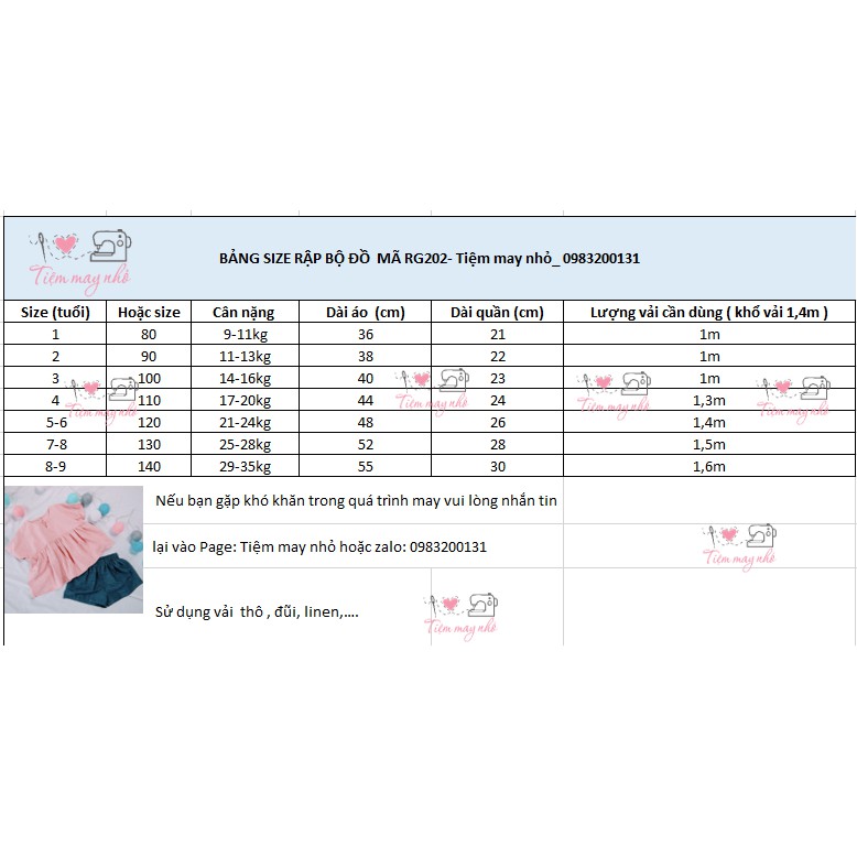 LƯU Ý : Rập giấy là bản vẽ trên trên giấy để mọi người tự may đồ chứ không phải quần áo đã may nên mọi người cân nhắc trước khi mua ạTrượt sang ngang để size bảng size và ảnh mẫu nhé. Hiện tại Tiệm có 2 kênh shopee chính thức: Thuhien21 và Tiemmaynho. com, quý khách nên mua rập giấy tại 2 kênh này để tránh trường hợp giả mạo
