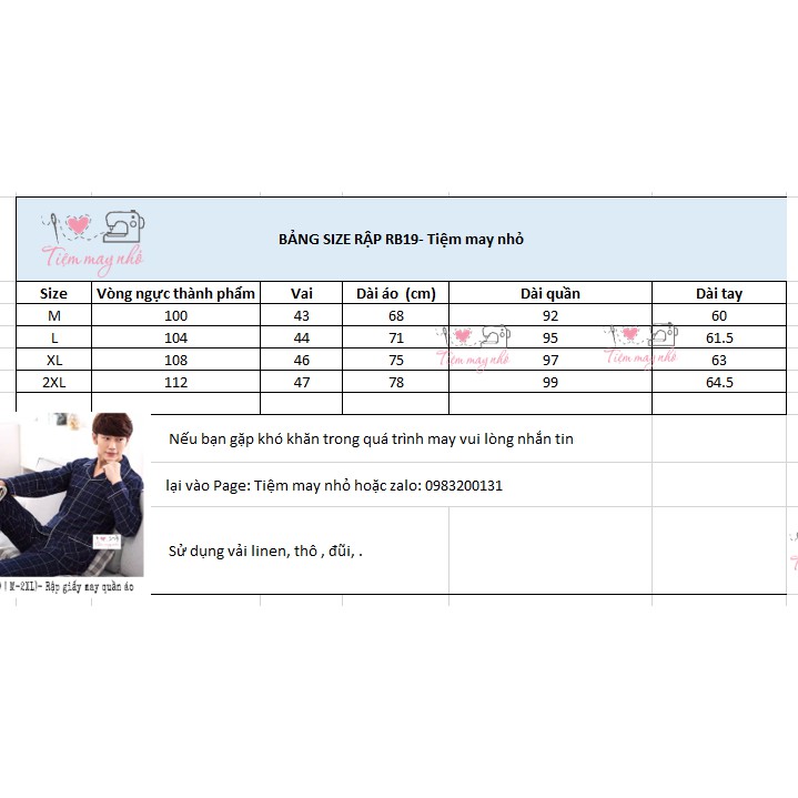 Sở thích & Sưu tầm > Dụng Cụ May Vá || [Mã SKAMCLU8 giảm 10% cho đơn từ 100K] RẬP GIẤY( bản vẽ ) _ RB19_rập giấy may bộ pijama namCòn hàng