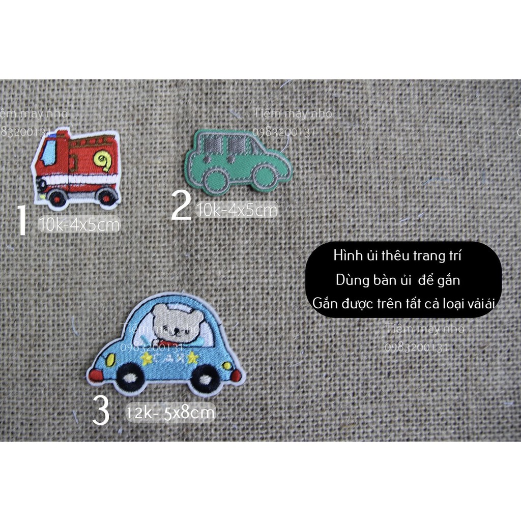 Hình ủi thêu ôtô trang trí quần áoGía và kích cỡ đã ghi trên ảnh