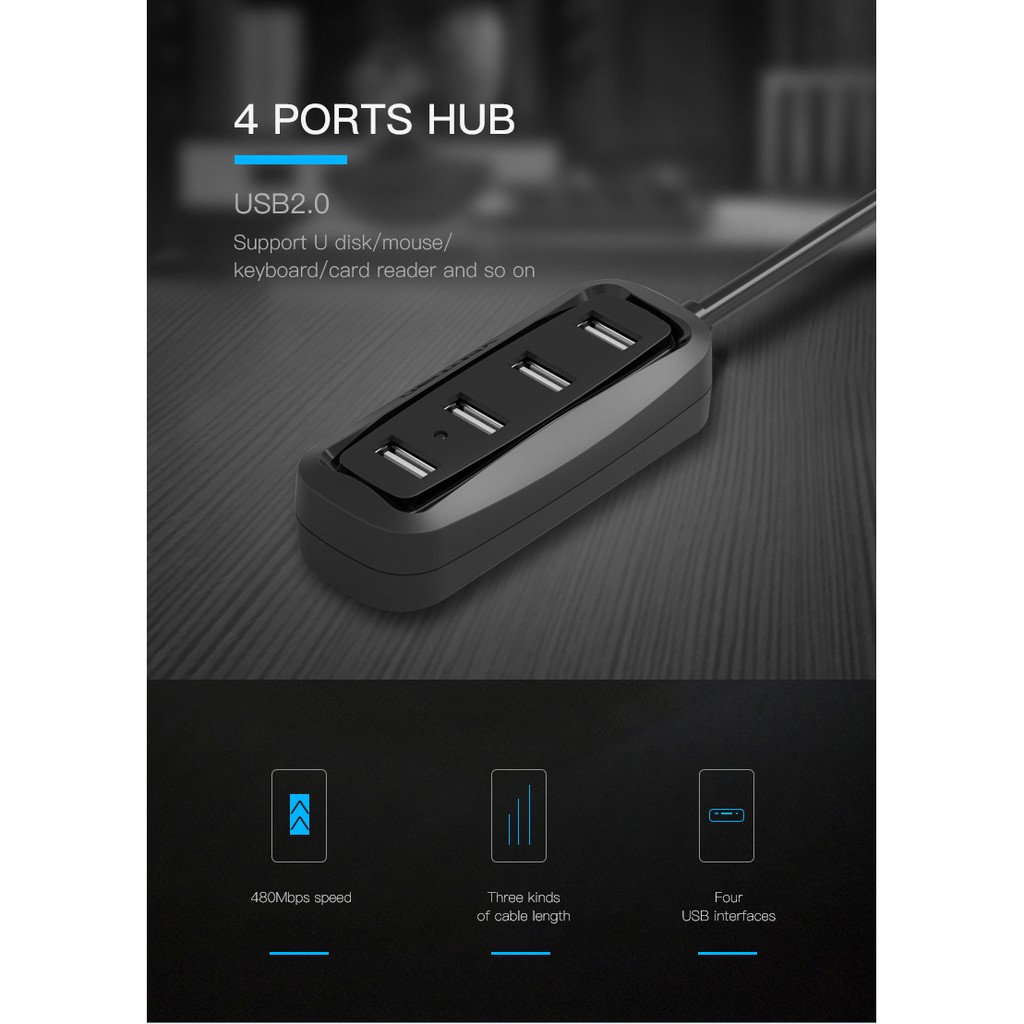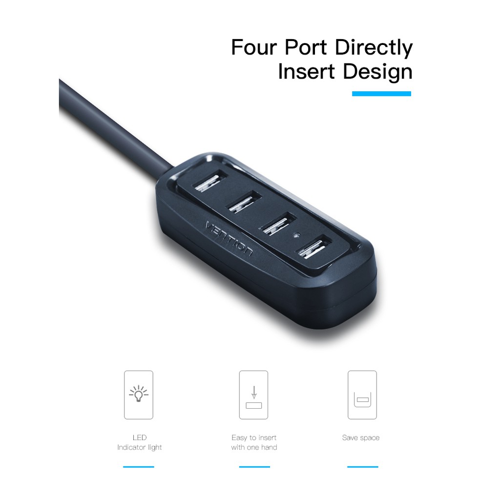 Bộ chia 4 cổng USB 2.0 Vention, dài 50Cm/1M VAS-J43 - BENĐầu vào : USB 2.0 male