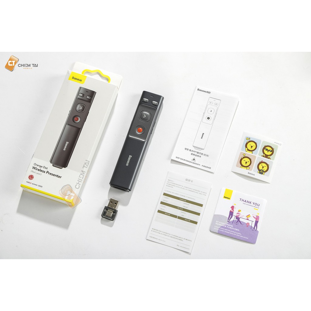 Bút trình chiếu Baseus còn được tích hợp công nghệ không dây hiện đại cho độ nhạy cao RF2.4G, tránh nhiễu hiệu quả, ổn định khoảng cách xa đến 100m. Giúp người dùng có thể kiểm soát tốt slideshow trong không gian đến 200m², hỗ trợ tối ưu trong mọi nhu cầu sử dụng từ văn phòng đến lớpBộ thu từ tính mini USB với thiết kế lưu trữ ẩn 1 đầu, hỗ trợ tốt cho các thao tác cắm rút và lưu trữ, tránh thất lạc trong quá trình sử dụng hằng ngày.