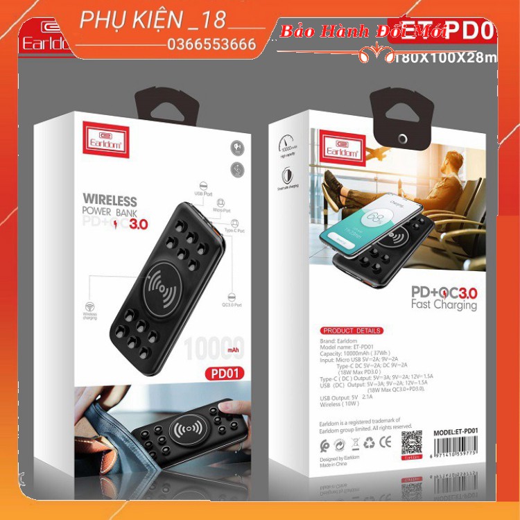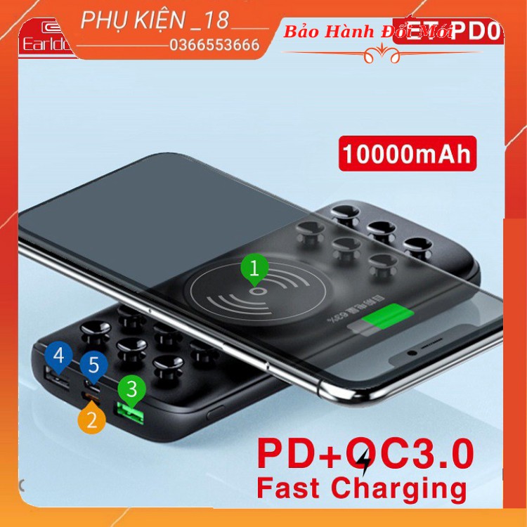 SẠC DỰ PHÒNG KÈM SẠC KHÔNG DÂY 10.000 MAH EARLDOM PD-01