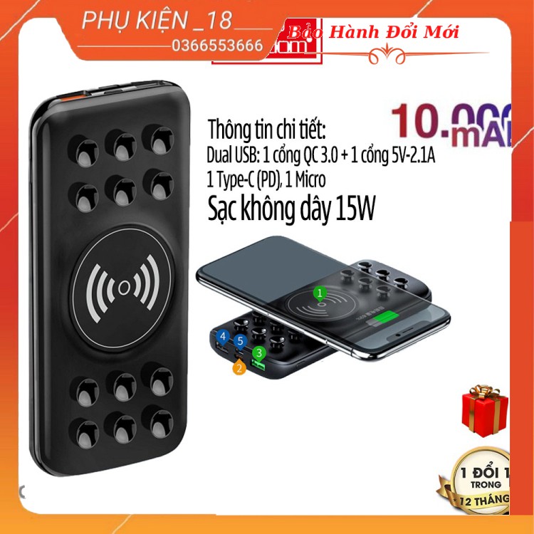 Điện Thoại & Phụ Kiện > Phụ kiện > Sạc dự phòng & Pin > Sạc dự phòng || [Mã SKAMCLU9 giảm 10% đơn 100K] SẠC DỰ PHÒNG KÈM SẠC KHÔNG DÂY 10.000 MAH EARLDOM PD-01Còn hàng