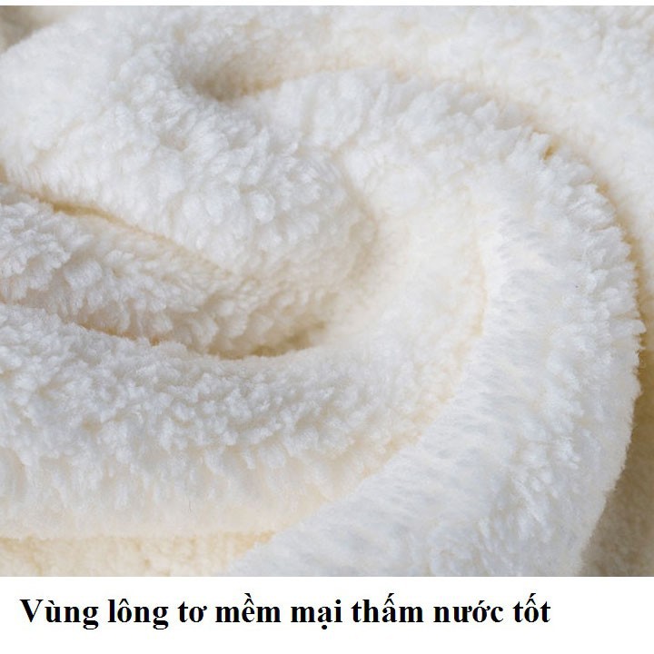 - Lau khô tóc mà không cần máy sấy, không tổn hại đến tóc, tránh gây khô, xơ tóc, không hại da đầu.