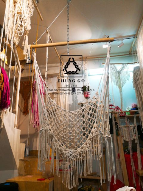 Nhà cửa & Đời sống > Trang trí nhà cửa > Khác || [Mã SKAMLTSM9 giảm 10% đơn 99K] Võng ngồi macrame size người lớn tặng kèm gối tròn lót và móc treoCòn hàng