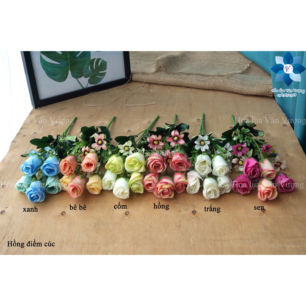 [Mã SKAMLTSM9 giảm 10% đơn 99K] Hoa Giả Hoa Hồng Điểm Cúc Lụa Trang Trí
