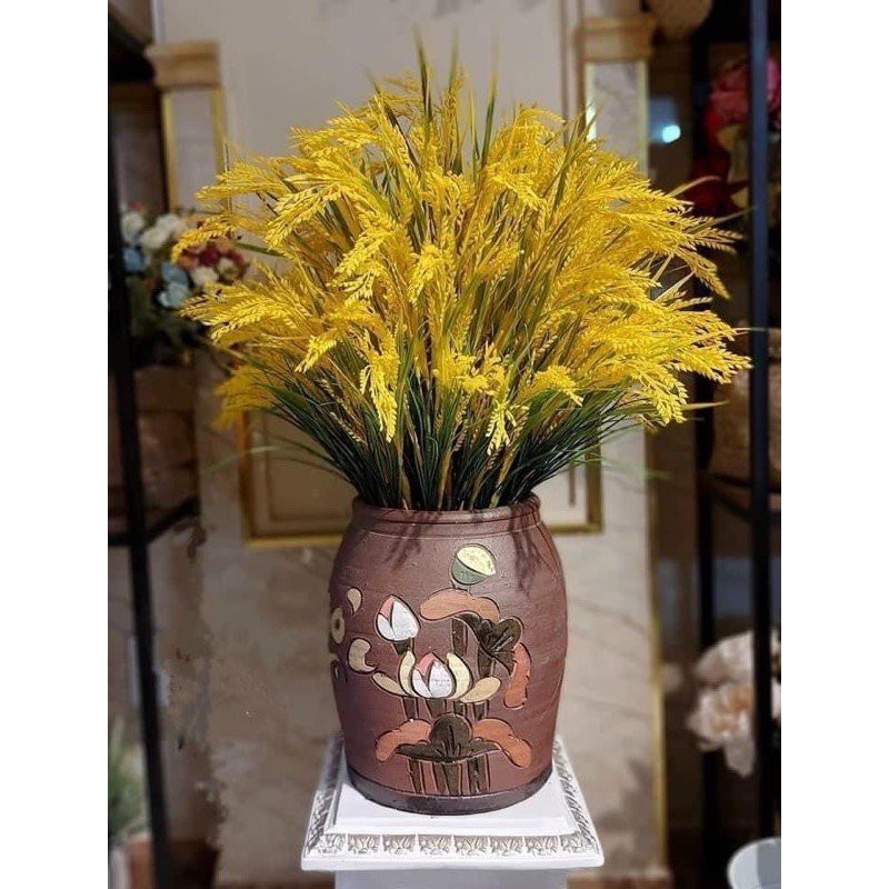✪ Chiều dài cành 87cm, 1 cành gồm 3 nhánh. Chiều dài bông lúa 23cm. Thóc chất liệu nhựa cao cấp bên trong có bọc lõi thép uốn tạo dáng dễ dàng .