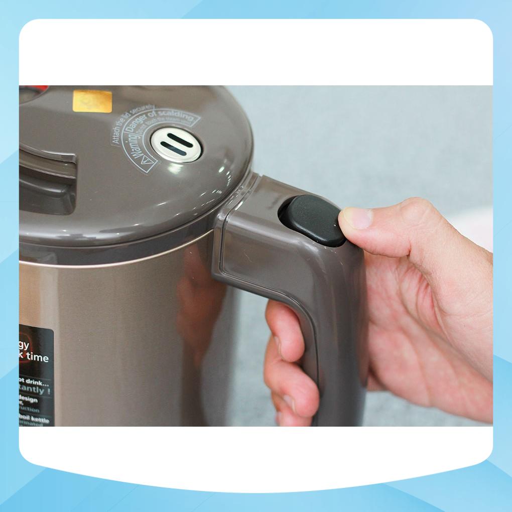 Sản phẩm sử dụng nguồn điện 220V chuẩn phù hợp ở mọi nguồn điện, không gây quá tải, không cần dây dẫn quá tốt hay nguồn điện khỏe để hoạt động như các loại ấm siêu tốc khác. Ngoài ra, bình đun còn trang bị hệ thống tự ngắt điện thông minh khi nước sôi hoặc khi bị đổ cùng cơ chế van khóa chống tràn nước, đảm bảo an toàn khi sử dụng.