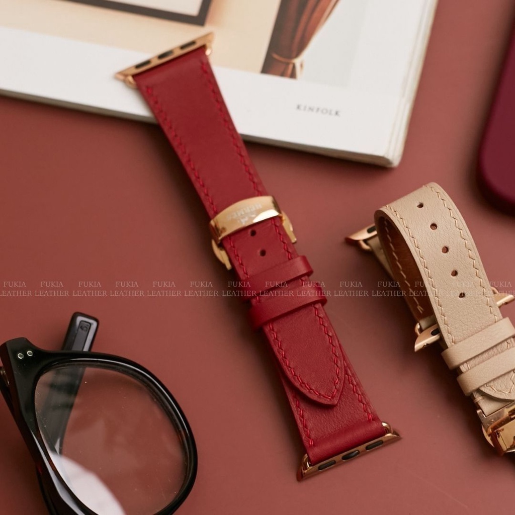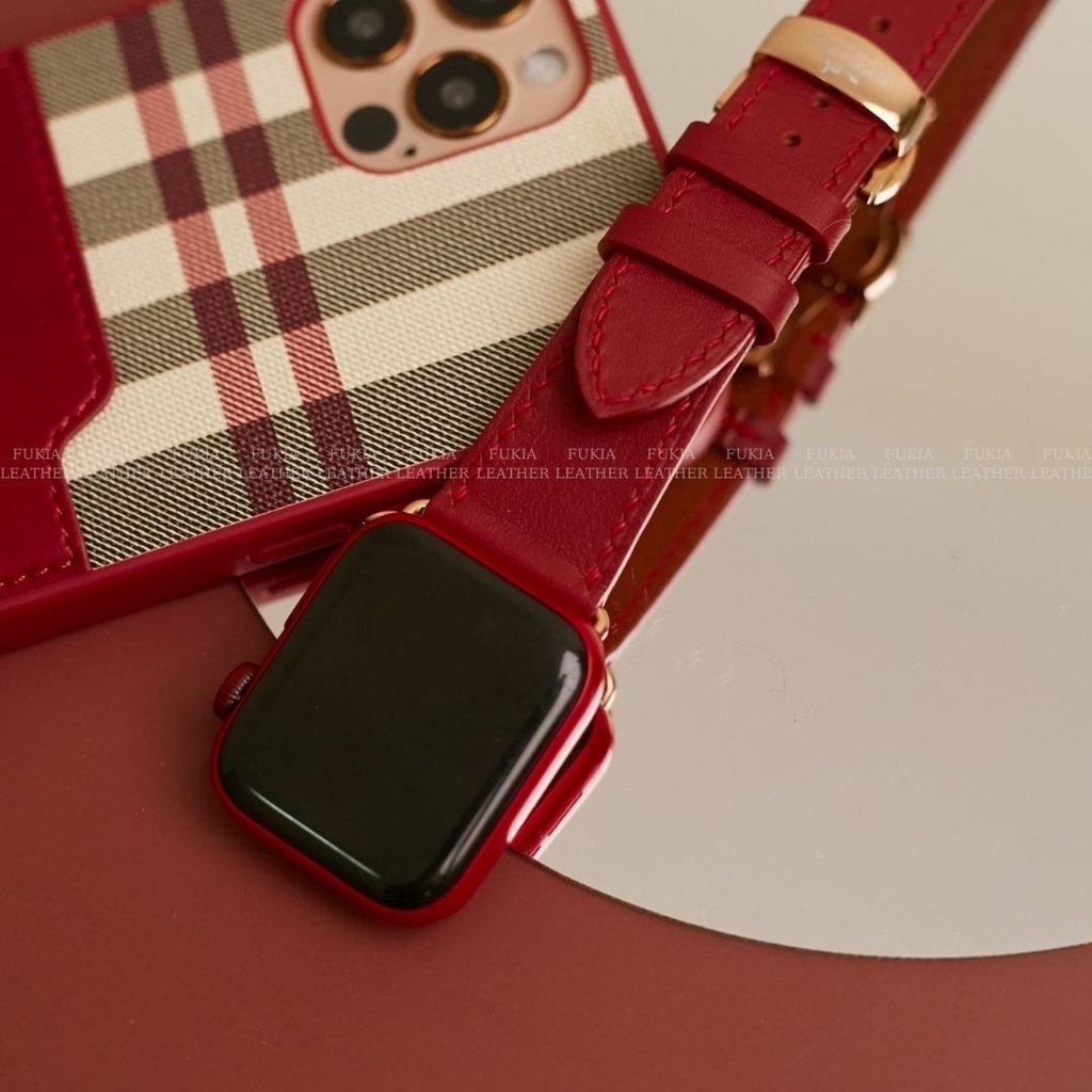 Dây da thủ công Swift Đỏ dành cho Apple Watch, đồng hồ thông minh, đồng hồ cơ