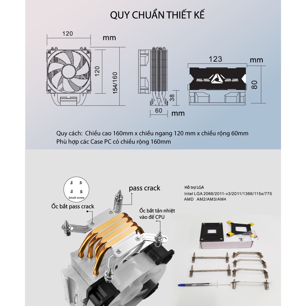 Quạt CPU VSP Cooler Masster T410i PLUS Led ARGBKích thước sản phẩm: 127 x 82 160mm