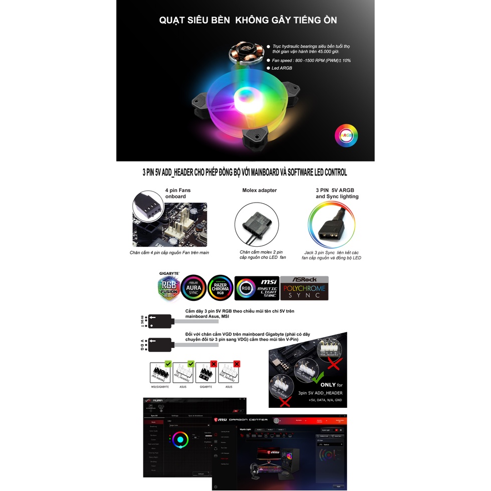 Tốc độ quạt: 800-1500 RPM (PWM) +/- 10%