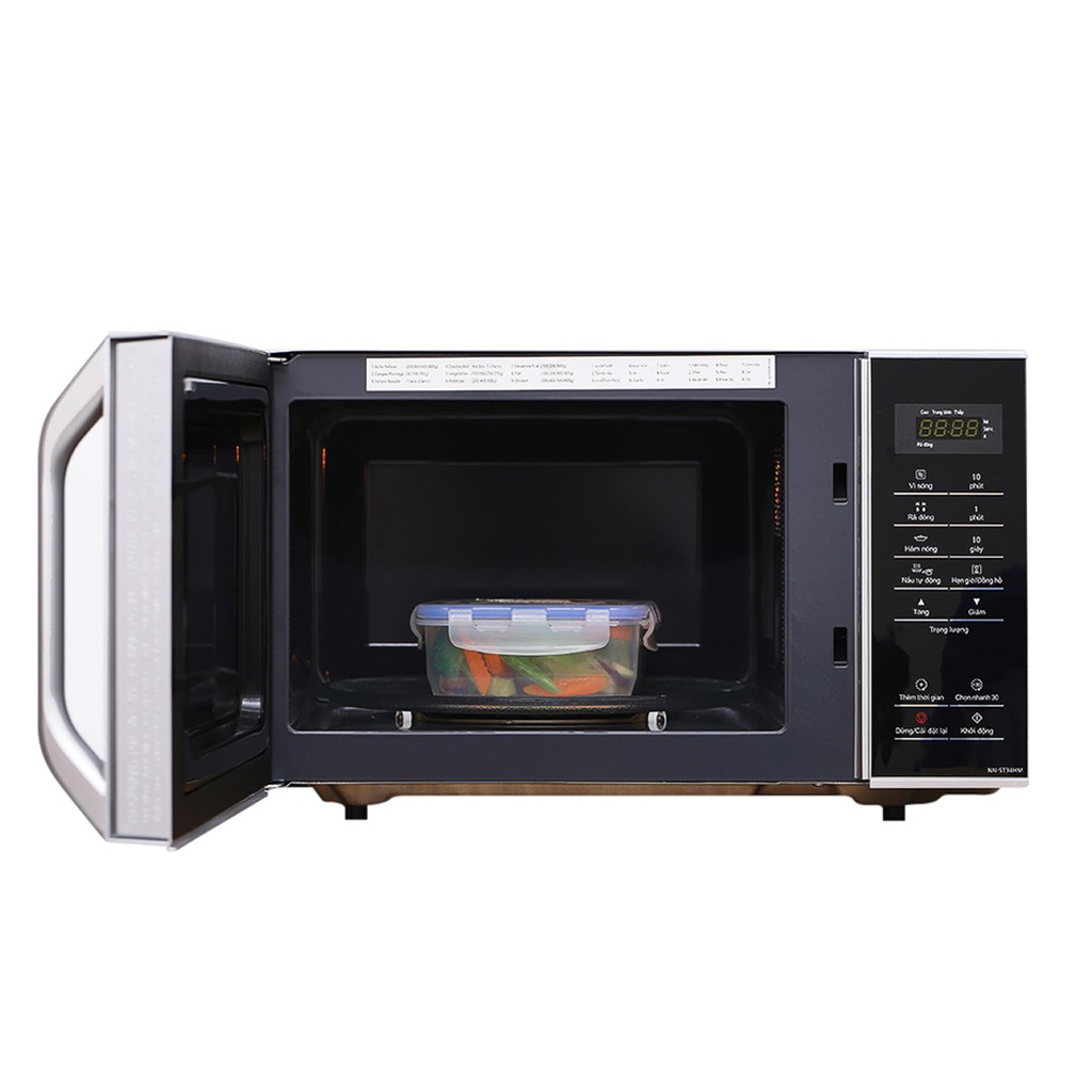 Ngoài ra lò vi sóng Panasonic có điểm nổi bật đó là chức năng rã đông nhanh hỗ trợ người dùng nấu nướng nhanh gọn hơn mà không mất nhiêu thời gian. Tích hợp 12 thực đơn tự động, 3 mức nướng kết hợp và tính năng chọn nhanh 30 giây, thêm thời gian khi sử dụng.