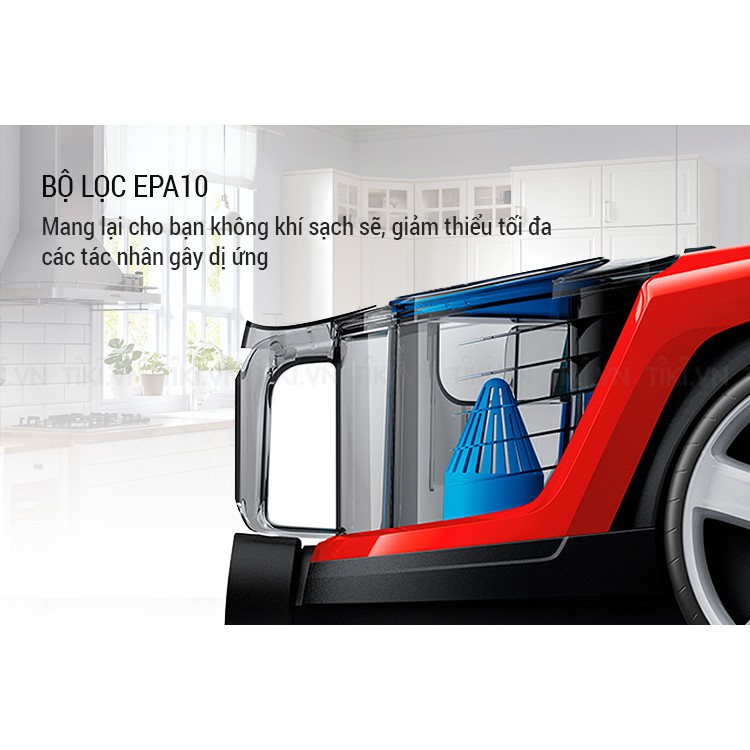 Thiết kế gọn nhẹ, dễ dàng di chuyển Dùng hộc chứa bụi 1,5L, không dùng túi Hoạt động mạnh mẽ với công suất tối đa 1900W Đầu hút Multi Clean Bộ lọc EPA 10 có thể rửa