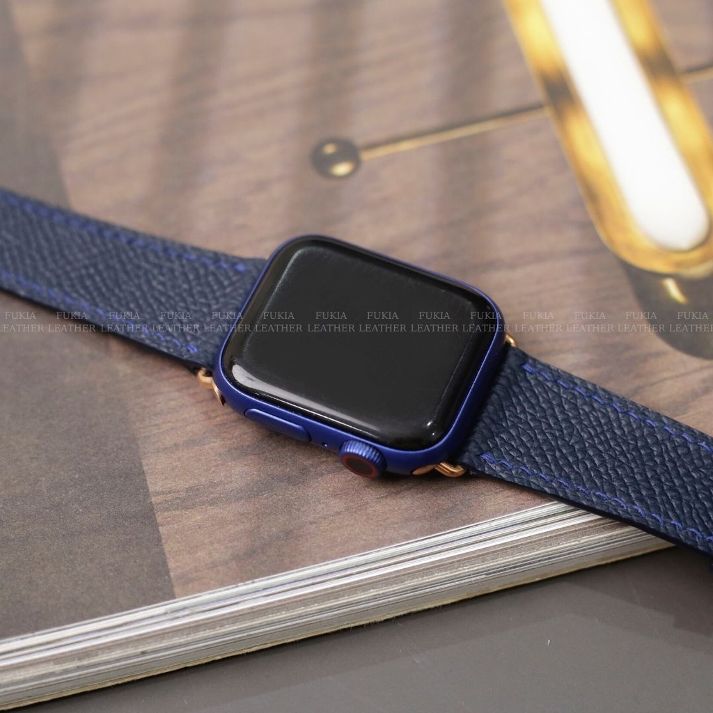 Dây da thủ công Epsom Xanh Navy dành cho Apple Watch, đồng hồ thông minh, đồng hồ cơ