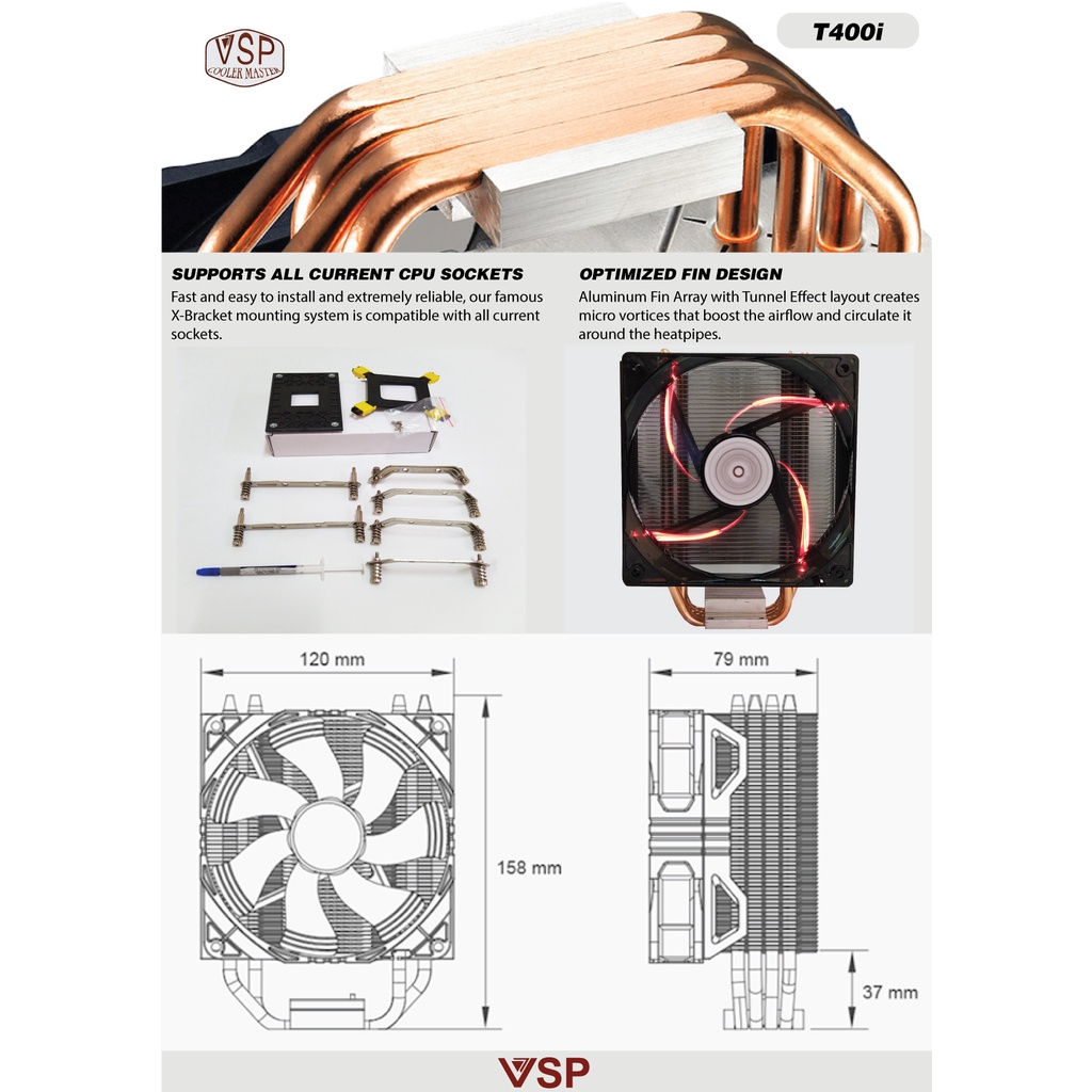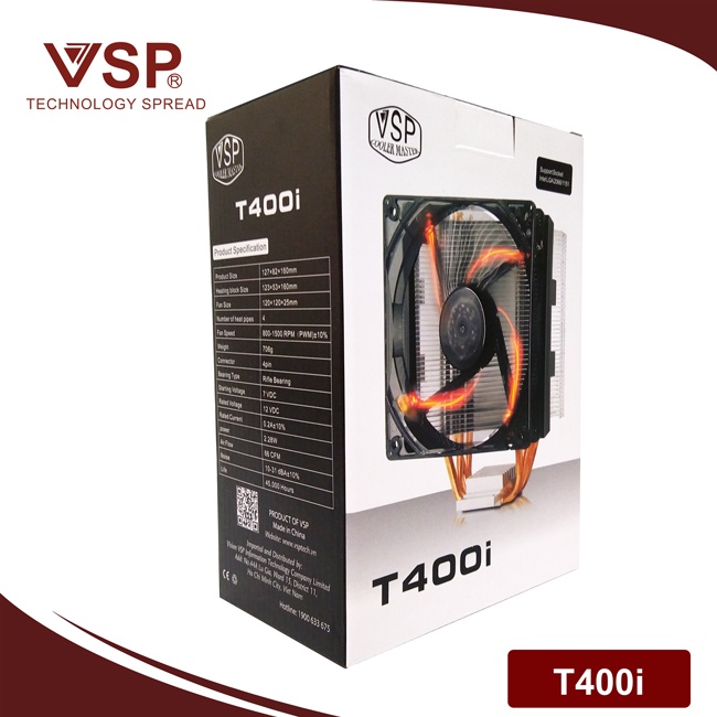 Quạt CPU VSP Cooler Masster T400iKích thước sản phẩm: 127 x 82 160mm