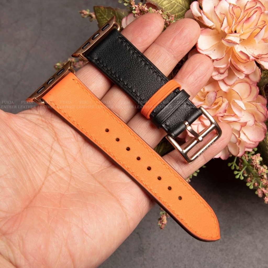 Điện Thoại & Phụ Kiện > Phụ kiện > Phụ kiện cho đồng hồ thông minh || [Mã SKAMSALE03 giảm 10% đơn 200k] Dây da thủ công Swift Đen Mix Cam dành cho Apple Watch, đồng hồ thông minh, đồng hồ cơCòn hàng