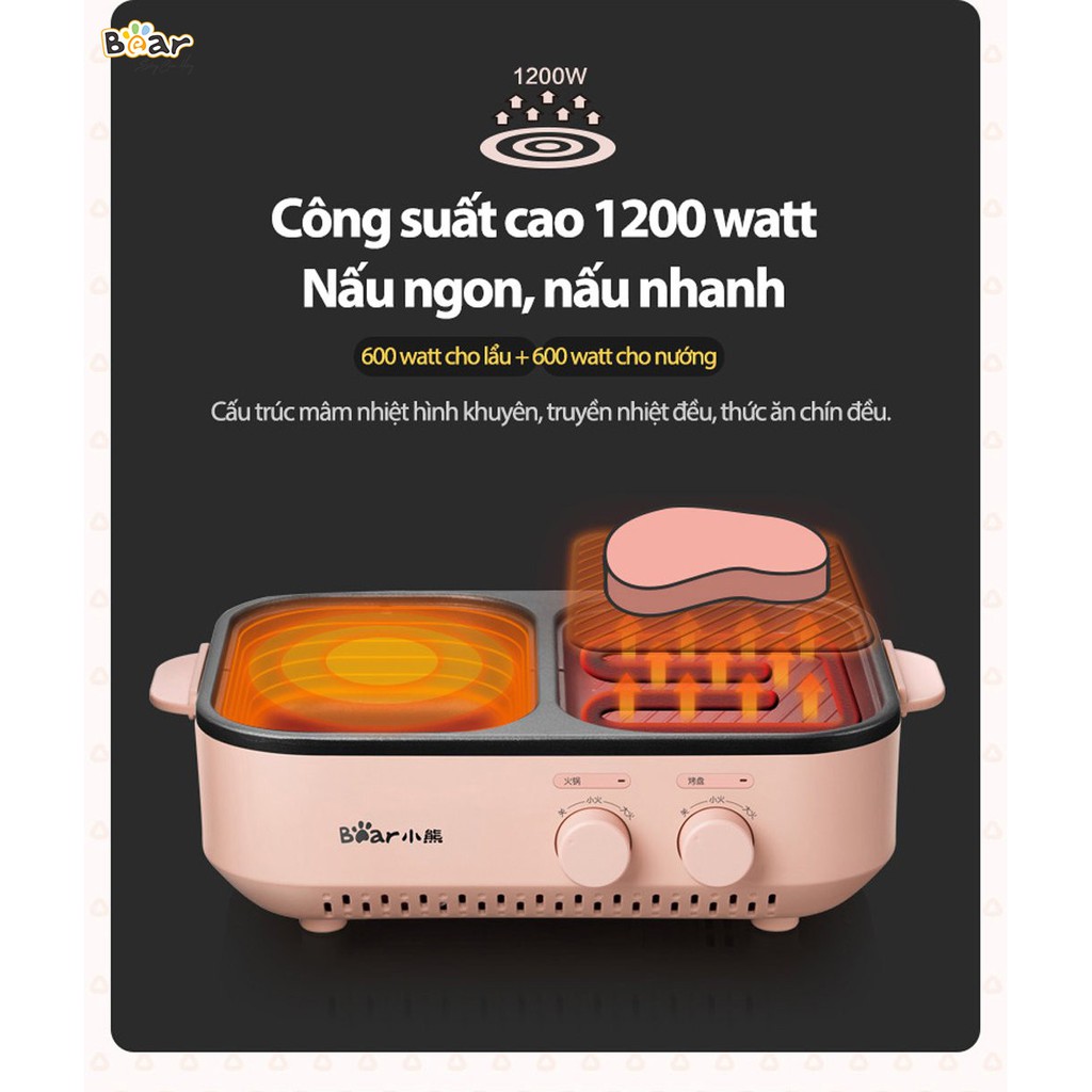 [Mã SKAMSALE03 giảm 10% đơn 200k] Bếp lẩu nướng, bếp điện đa năng BEAR DKL-C12D1- BH 12 Tháng dung tích 2 lit.