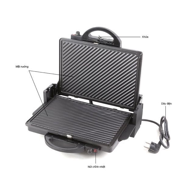 Khi mở ra 180 độ bạn có thể sử dụng như 1 chiếc vỉ nướng điện thông thường với 2 bên khay nướng với 2 nút điều chỉnh nhiệt độ khác nhau.Bạn có thể sử dụng như 1 chiếc máy nướng bánh Sandwich, hoặc nướng cá thịt.