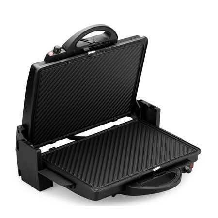 Ưu điểm nổi bật của sản phẩmMáy không chỉ giúp bạn chế biến món nướng, xiên que mà còn có chức năng làm bánh mì sandwich. Máy có hai mặt nướng nên có thể nướng được nhiều thức ăn hơn; mỗi mặt đều có nút điều chỉnh nhiệt độ riêng. Thiết kế mặt nướng có rãnh giúp thức ăn không dính và giảm thiểu dầu mỡ. Khi không sử dụng, hai mặt của Kẹp nướng điện Tiross TS965 có thể gập lại và khóa chốt, nhằm giúp bạn tiết kiệm diện tích và dễ dàng bảo quản.