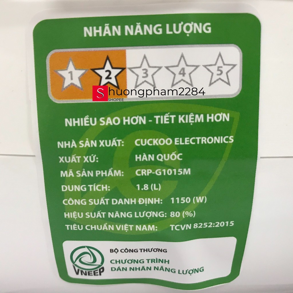 Thiết Bị Điện Gia Dụng > Đồ gia dụng nhà bếp > Nồi cơm điện || [Mã 253ELSALE hoàn 7% xu đơn 300K] Nồi cơm điện tử Cuckoo CRP-G1015M 1.8L nhập khẩu Hàn QuốcCòn hàng