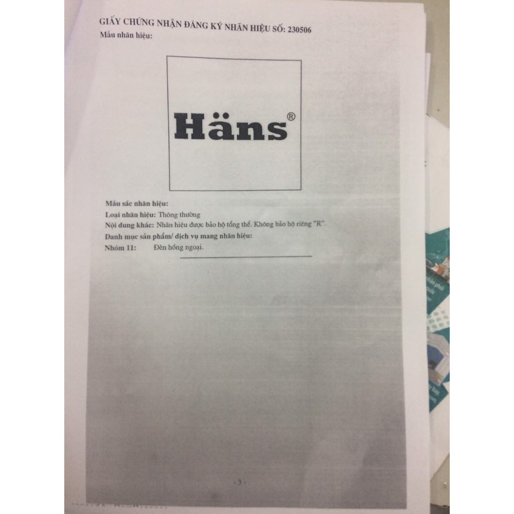 Thương hiệu: Hans | Xem thêm các sản phẩm Thiết bị sưởi ấm của HansMô tả ngắn