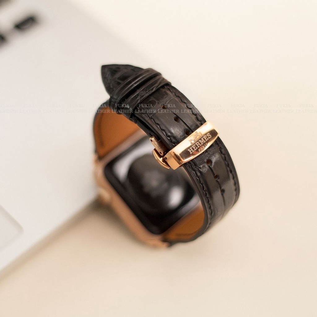 Giới thiệu Dây da thủ công Cá Sấu Đen dành cho Apple Watch, đồng hồ thông minh, đồng hồ cơ
