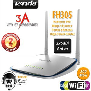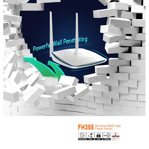 - Router Wifi Tenda FH305 để đáp ứng các gia đình lớn được thiết kế để chia sẻ Internet không dây, sử dụng chip Broadcom hàng đầu thế giới. Là thiết bị phát sóng wifi công suất cao 200mW, tốc độ truyền tải không dây 300Mbps, 2 anten 5dBi, tín hiệu không dây tốt hơn, vùng phủ song rộng hơn. Hồ trợ tín hiệu Wifi chức năng khuyếch đại có thể mở rộng vùng phủ sóng mạng không dây của bạn cho khả năng phát sóng mạnh, xuyên tường tốt.