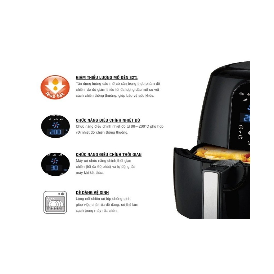 Thiết Bị Điện Gia Dụng > Đồ gia dụng nhà bếp > Nồi chiên không dầu || Nồi chiên không dầu Lock&Lock EJF351BLK - EJF151BLK 5,2L - Hàng chính hãngCòn hàng