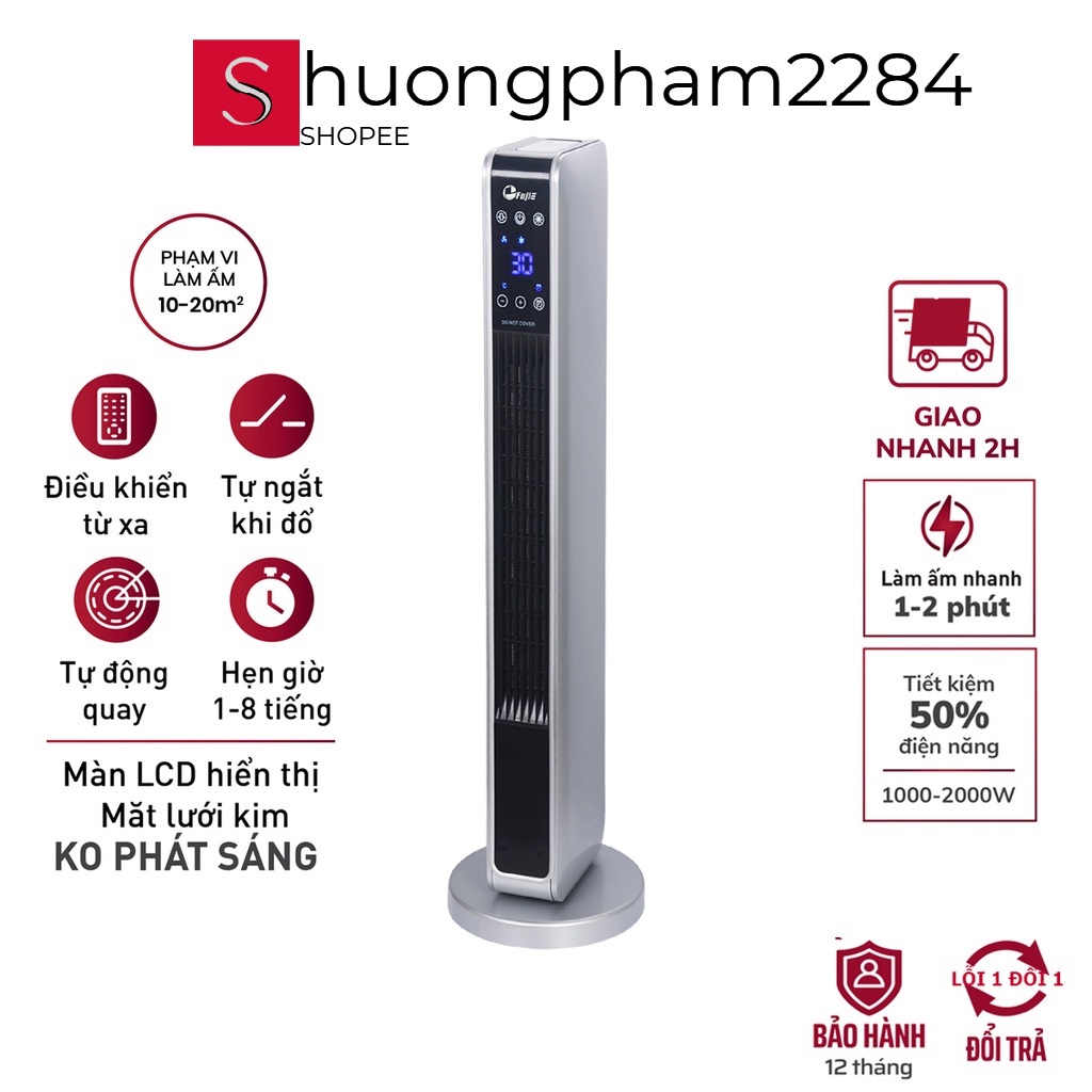 - Chế độ sưởi: Ấm / nóng có 2 mức công suất 1000 và 2000W