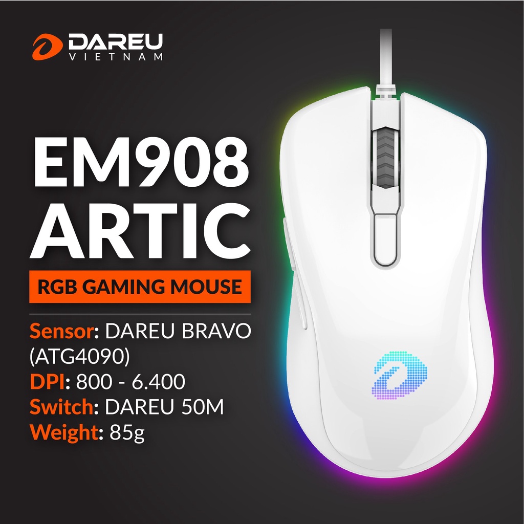 Giới thiệu [Mã SKAMSALE03 giảm 10% đơn 200k] Chuột Gaming DAREU EM908 QUEEN PINK/ WHITE/ BLACK (LED RGB, BRAVO sensor) BH 2 năm