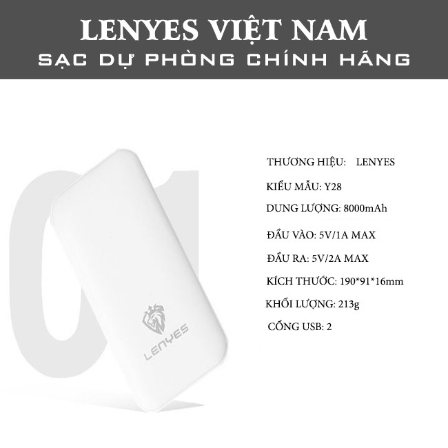 Giới thiệu [Mã SKAMSALE03 giảm 10% đơn 200k] Pin Sạc Dự Phòng Lenyes Y28 – 8000mAh- Hỗ Trợ Sạc Nhanh