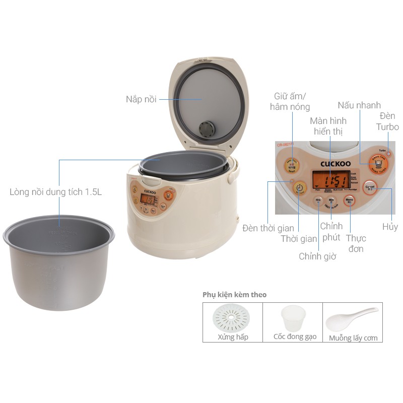 Thiết Bị Điện Gia Dụng > Đồ gia dụng nhà bếp > Nồi cơm điện || [Mã 253ELSALE hoàn 7% xu đơn 300K] Nồi Cơm Điện Tử Cuckoo CR-0821FI - 1.5L - Hàng Chính HãngCòn hàng