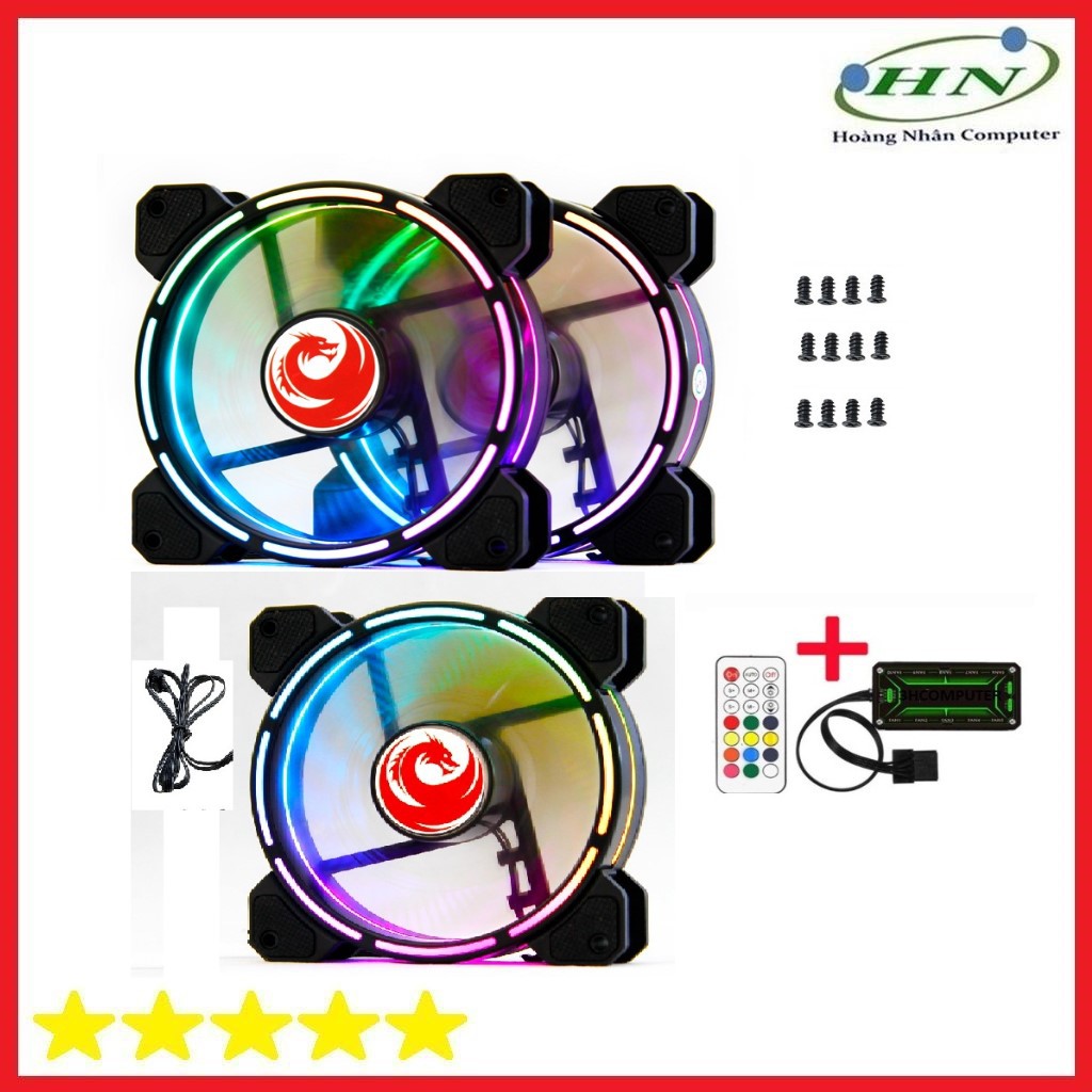 Máy tính & Laptop > Linh Kiện Máy Tính > Quạt và Tản Nhiệt || Bộ 3 Fan LED RGB RED DRAGON V9 - HUB -REMOTE -VÍTCòn hàng