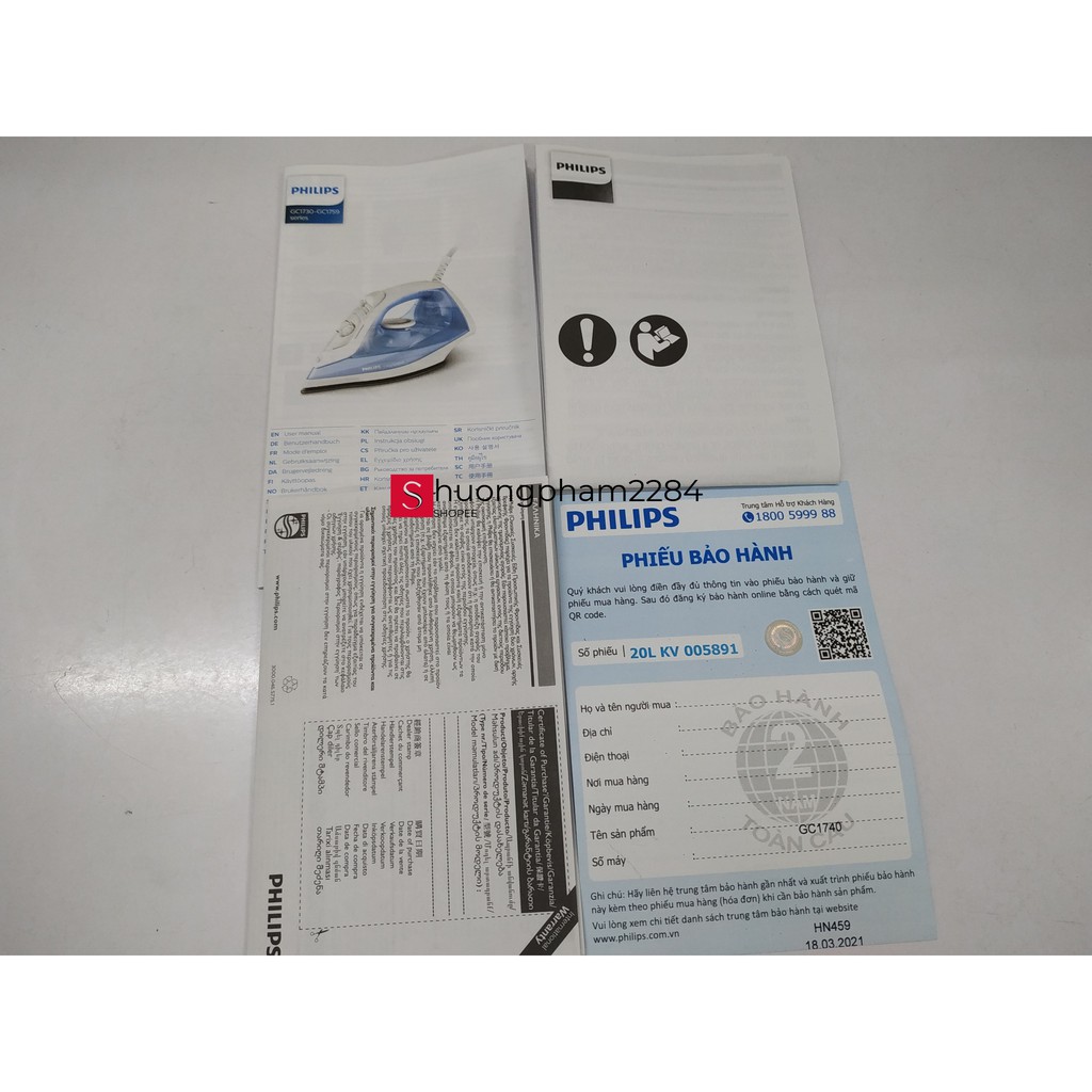 Thiết Bị Điện Gia Dụng > Thiết bị điện gia dụng nhỏ > Bàn là khô & Hơi nước || [Mã 44ELSALE2 giảm 7% đơn 300K] Bàn Ủi Hơi Nước Philips GC1740 - Hàng Chính HãngCòn hàng