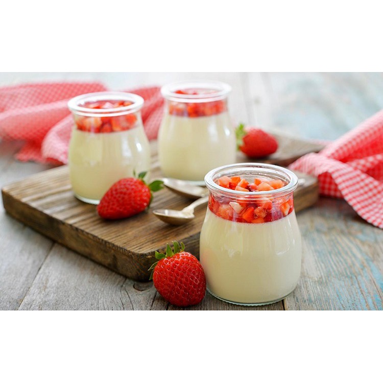 🍧 Kèm theo máy là 12 lọ thủy tinh 210ml với nắp nhựa có ren, dốc ngược không bị đổ nên thoải mái mang đi xa. Bạn có thể làm tối đa 2,5 lít sữa chua với 12 lọ hoặc ủ ít hơn tùy theo nhu cầu.