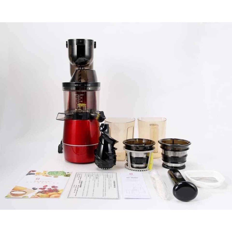 Máy ép chậm Ranbem RBM-611 hoạt động dựa trên nguyên lý dạng trục ép, rãnh soán giúp ép hoa quả được kĩ hơn, kiệt nước, giữ lại hoàn toàn các chất dinh dưỡng. Động cơ được làm bằng đồng nguyên chất, siêu bền, giúp làm tăng tuổi thọ của máy. Công suất 150W độ ồn thấp, có thể sử dụng được cho các nhà hàng, quán nước và ép được nhiều loại hoa quả rất tiện lợi. Thiết kế kiểu dáng chắc chắn, màu đỏ nổi bật sang trọng.