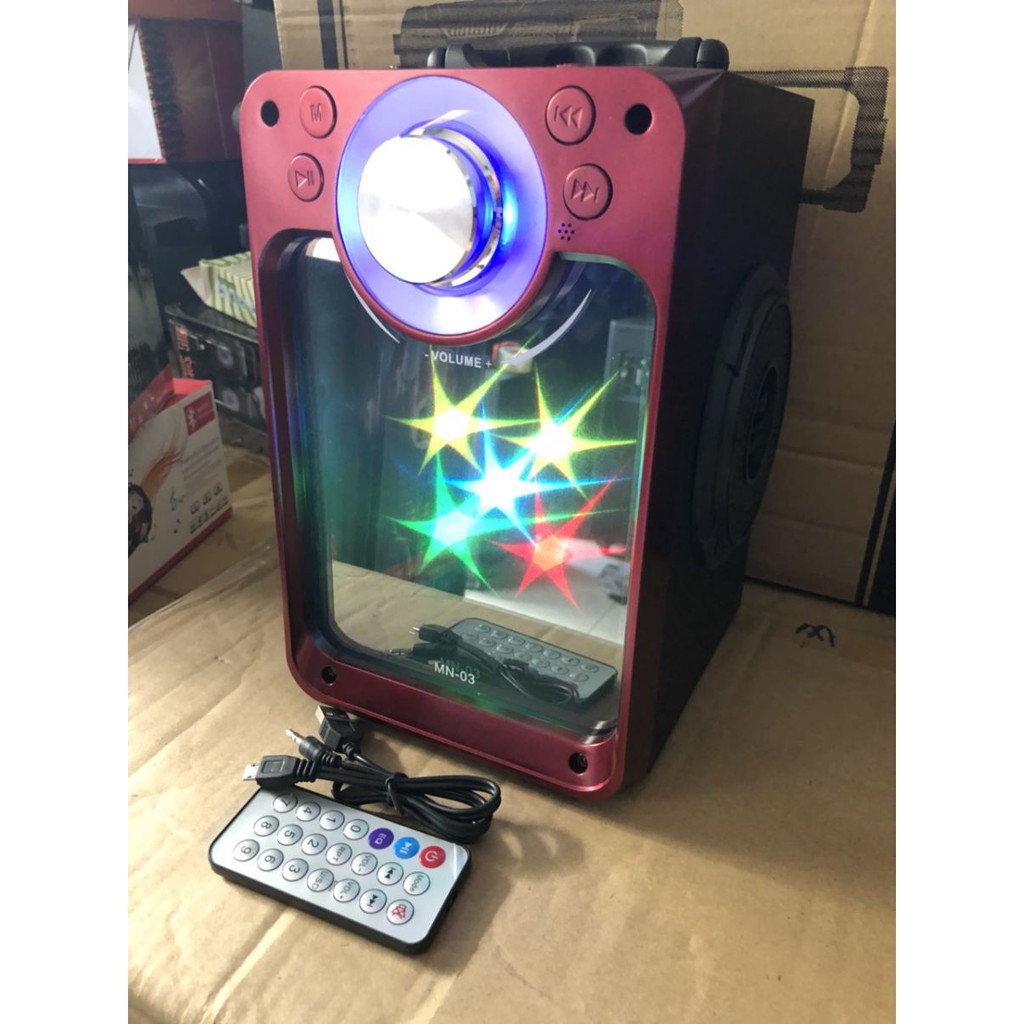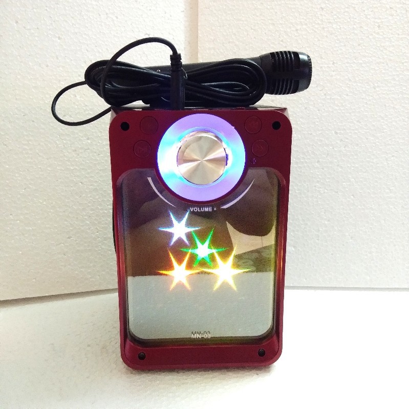 Loa kéo karaoke Bluetooth mini MN-03 có remote (Tặng kèm micro có dây)Loa kéo karaoke Bluetooth mini MN-03 (có remote và micro) là dòng loa mini có công suất lớn và âm thanh chuẩn so với các dòng loa karaoke Bluetooth mini khác trên thị trường, được nhiều người tin dùng trong thời gian qua.