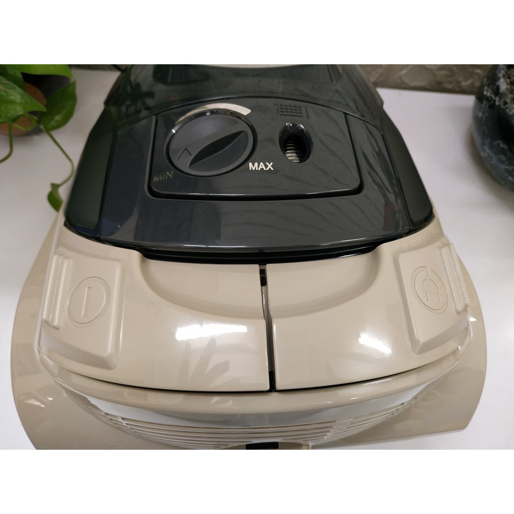 Máy hút bụi có dung tích chứa bụi là 1.6 lít, màng lọc tiêu chuẩn, với đầu hút chính và đầu hút thảm/sàn. Đi kèm sản phẩm còn có chổi hút bụi và đầu hút khe 2 chiều.