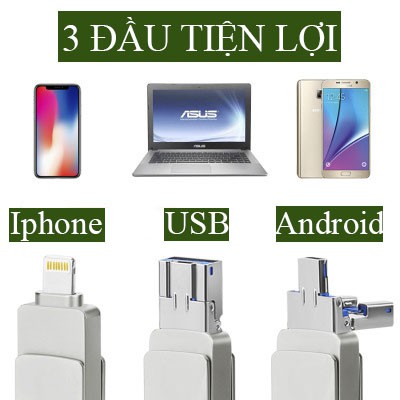 - Kết hợp cùng lúc 3 in 1 gồm đầu USB đầu Android đầu Iphone giúp cho việc chuyển hình ảnh video âm thanh tiện lợi nhanh chóng giữa Máy tính laptop và điện thoại