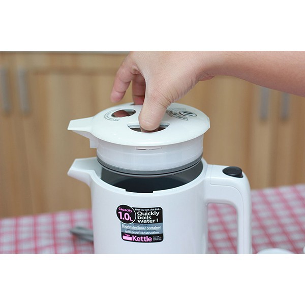 Sản phẩm sử dụng nguồn điện 220V chuẩn phù hợp ở mọi nguồn điện, không gây quá tải, không cần dây dẫn quá tốt hay nguồn điện khỏe để hoạt động như các loại ấm siêu tốc khác. Ngoài ra, bình đun còn trang bị hệ thống tự ngắt điện thông minh khi nước sôi hoặc khi bị đổ cùng cơ chế van khóa chống tràn nước, đảm bảo an toàn khi sử dụng.