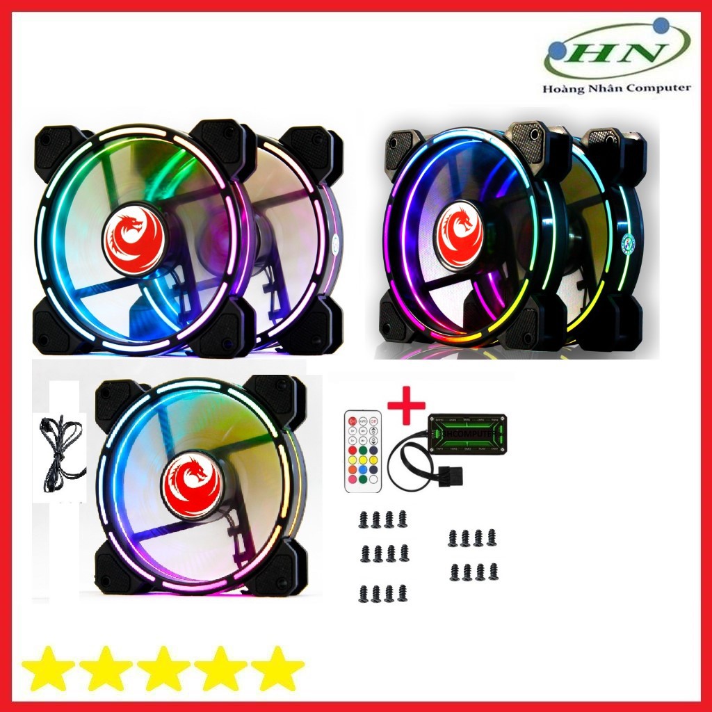 Máy tính & Laptop > Linh Kiện Máy Tính > Quạt và Tản Nhiệt || Bộ 5 Fan LED RGB RED DRAGON V9 - HUB -REMOTE -VÍTCòn hàng