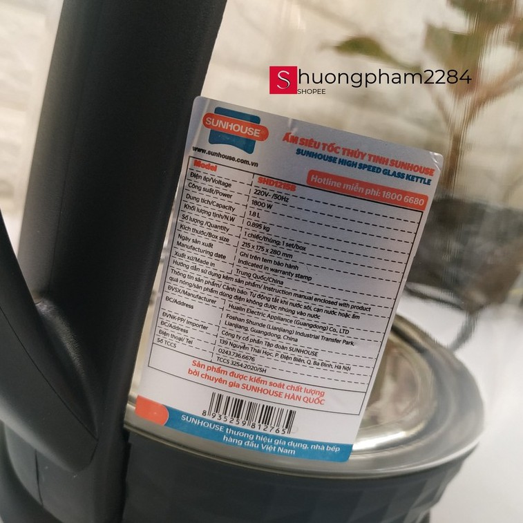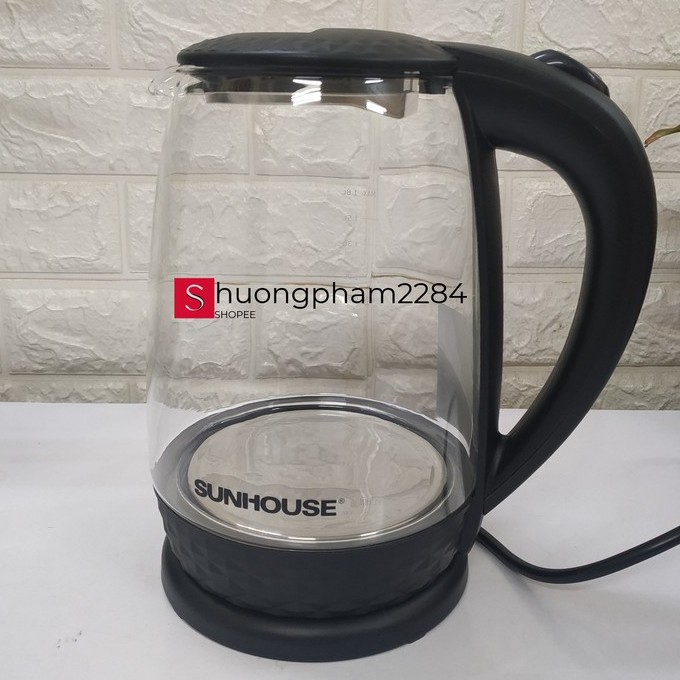 Thiết Bị Điện Gia Dụng > Đồ gia dụng nhà bếp > Ấm đun siêu tốc || [Mã 44ELSALE2 giảm 7% đơn 300K] Ấm siêu tốc thuỷ tinh 1,8 lít Sunhouse SHD1215 (màu đen) - Hàng chính hãng mới 100%Còn hàng