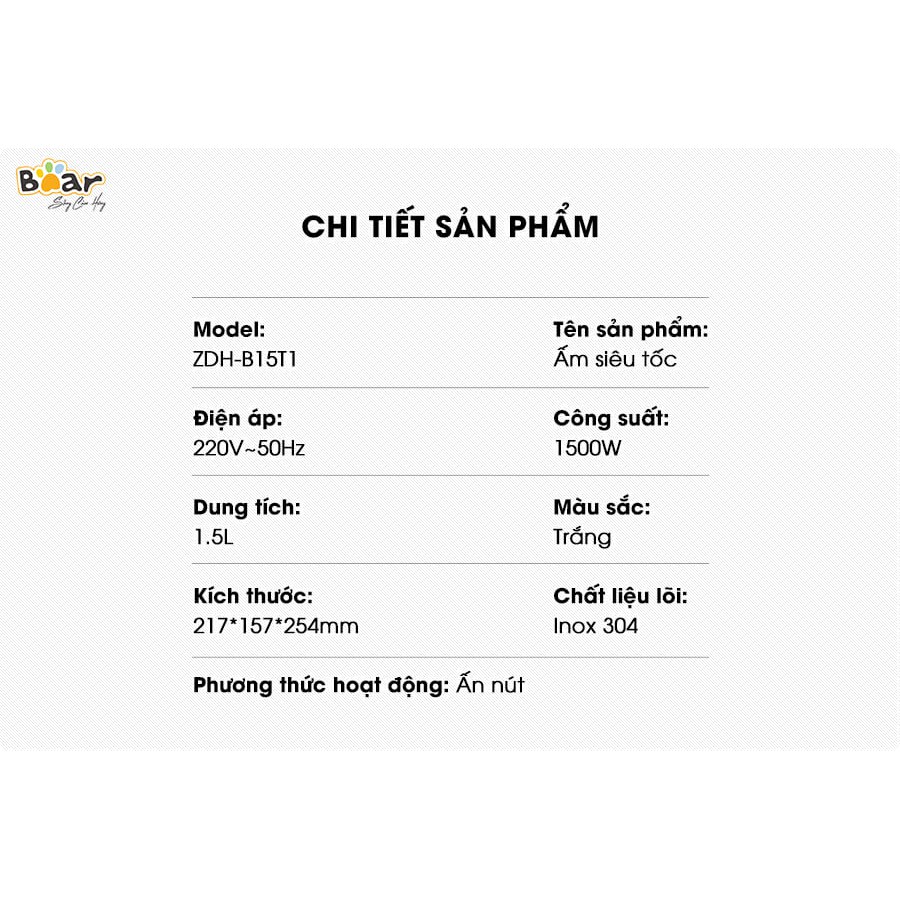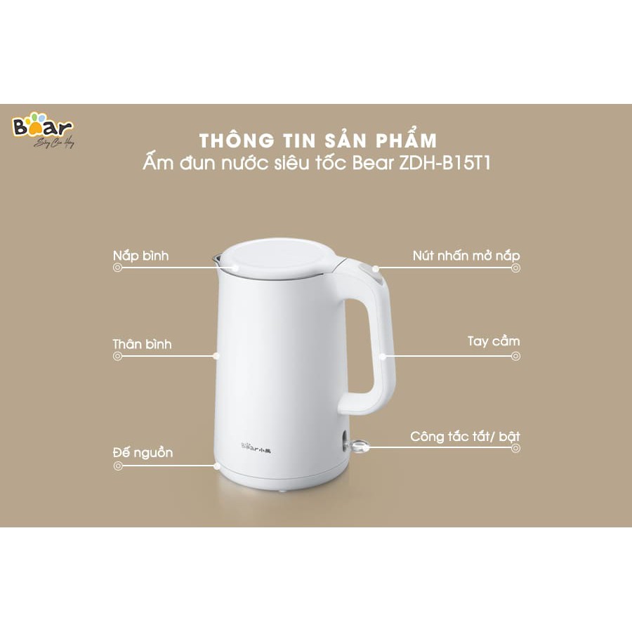 Thiết Bị Điện Gia Dụng > Đồ gia dụng nhà bếp > Ấm đun siêu tốc || [Mã SKAMSALE03 giảm 10% đơn 200k] Bình Đun Nước Siêu Tốc Bear ZDH-B15T1Còn hàng