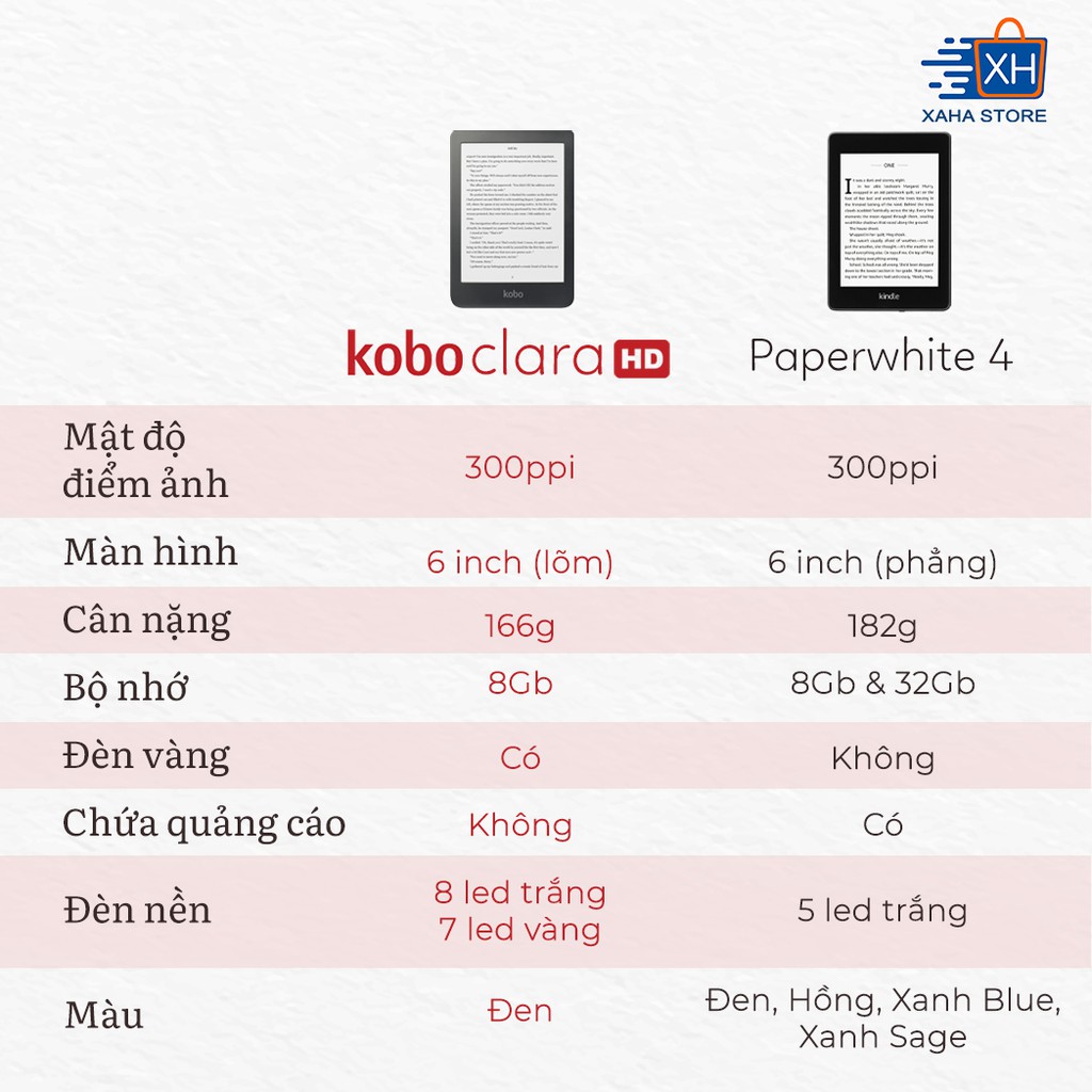 (*) Vì trong phân loại thương hiệu của Shopee không có dòng Clara HD nên mình để tạm là Kobo Glo HD nhé mọi người