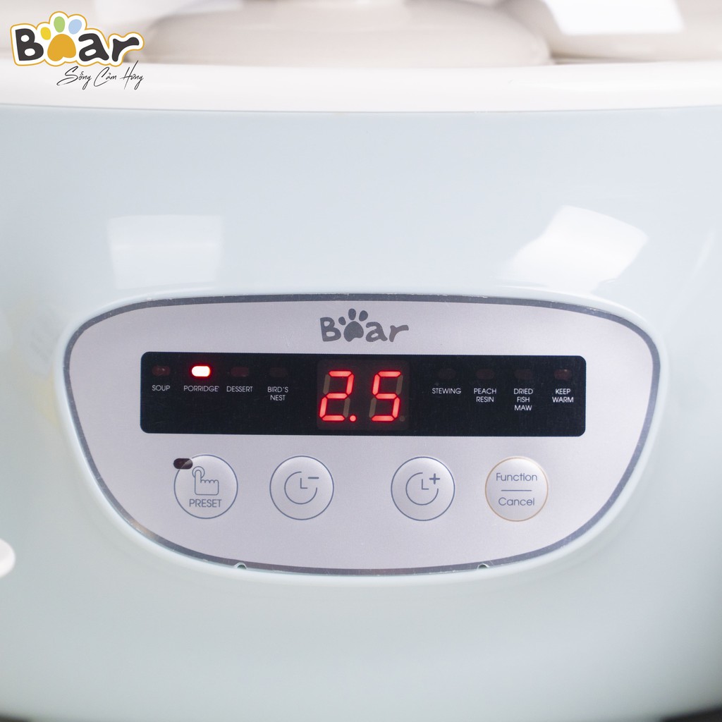 Nồi nấu chậm 2.5L Bear SUBE003, nấu cháo, đồ ăn dặm an toàn tiện dụng cho trẻ em