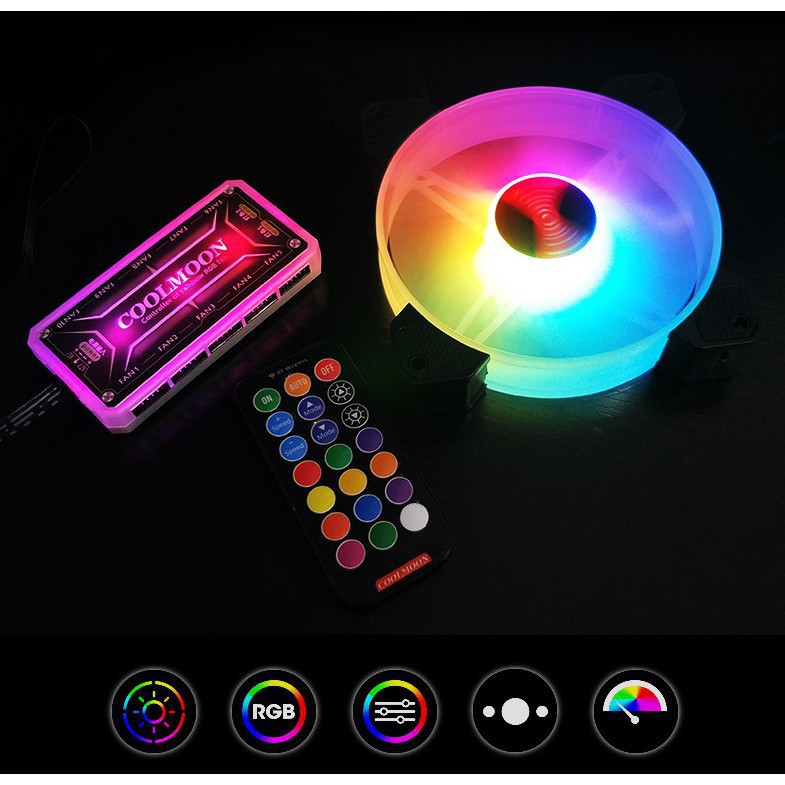 Fan RGB Coolmoon Y1 (Hub Có Led RGB) - Quạt Tản Nhiệt Máy Tính * Fan chỉ hoạt động khi kết nối với hub coolmoon - Điện áp cấp: + Fan: 12V cho Quạt+ LED: 5v cho LED